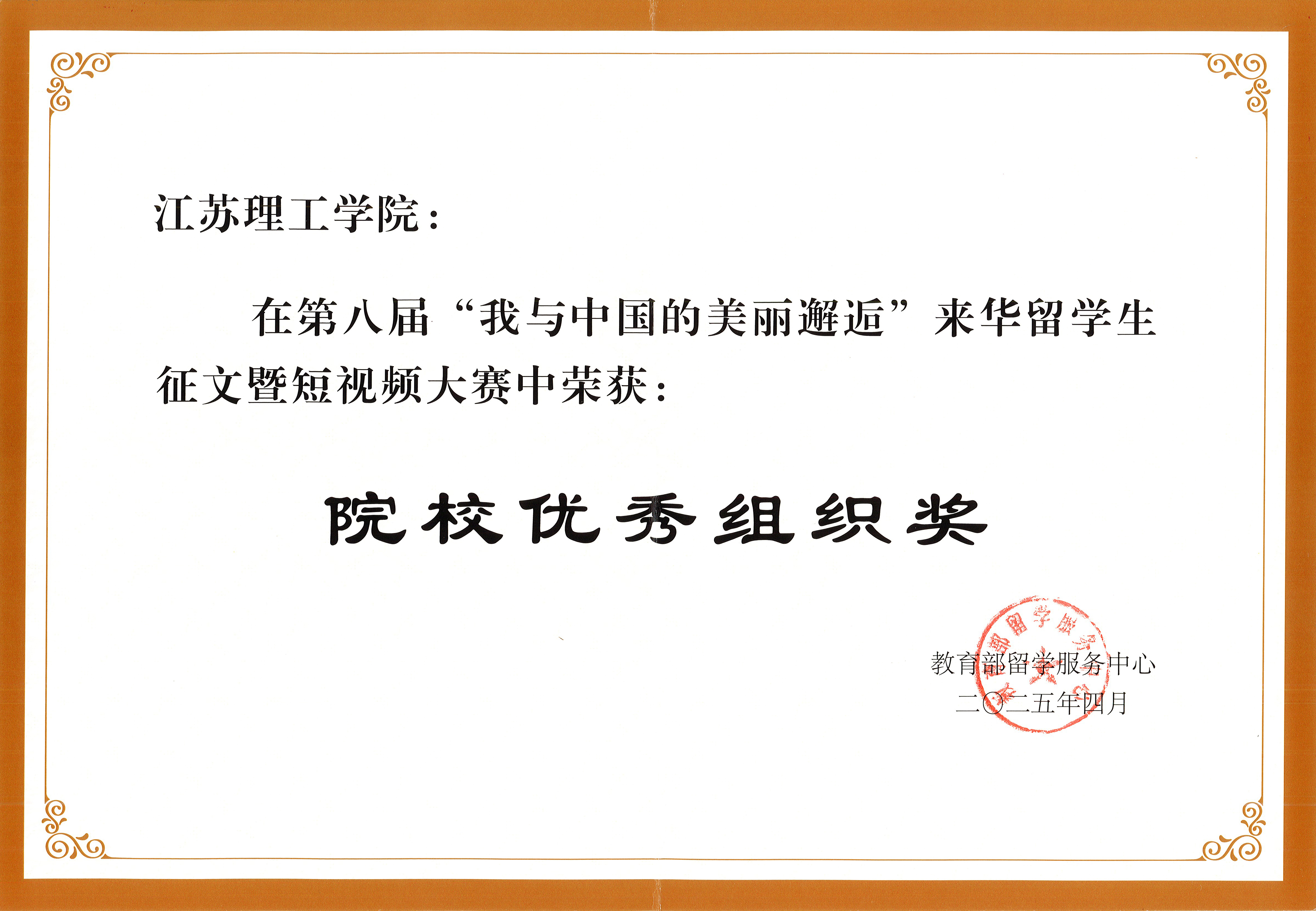 据悉,“我与中国的美丽邂逅”系列活动已连续举办8届。本次大赛共收到来自100余所国内院校、驻外教育处组及个人投稿的征文暨短视频作品1100余件。大赛最终评选出一等奖8名、二等奖13名、三等奖26名、特色奖20名、 优秀奖76名。学院高度重视该活动,积极组织留学生报名,选送优秀作品参赛,连续多年获“院校优秀组织奖”。学生通过作品,讲述自己与中国的不解之缘,进一步丰富了“留学江理工”内涵。(文/图 郜思洁;审核/吴玉峰)