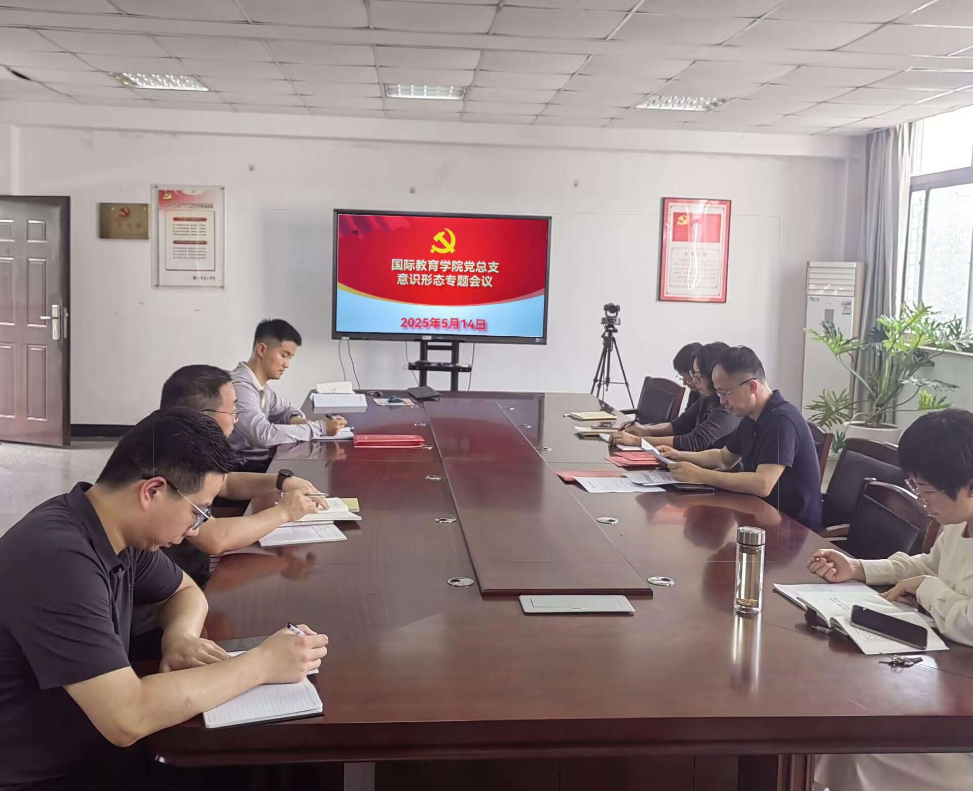 5月14日,国际教育学院在会议室举行意识形态工作专题会议。会议由党总支书记吴玉峰主持,党总支全体成员及相关科室负责人参加会议。